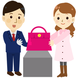 お客さまがお持ちになる商品を査定し、査定の範囲内でお金を融資もしくは買取りをするシステムです。